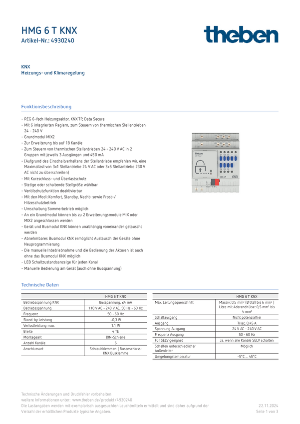 Element wykonawczy Theben 4930240 HMG 6 T KNX
