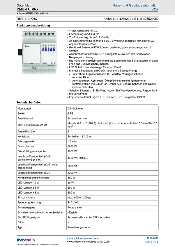 Element wykonawczy Theben 4930228 RME 4 U KNX