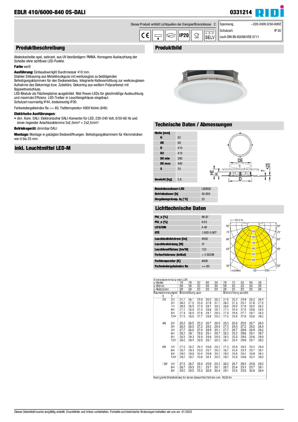 Oświetlenie wewnętrzne LED RIDI 331214 331214 37 W 4930 lm