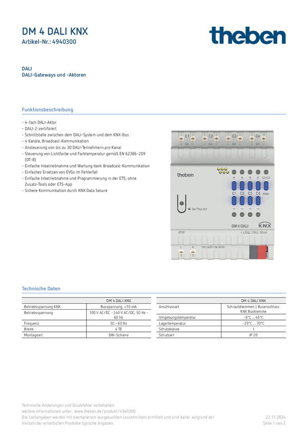 Interfejs Theben 4940300 DM 4 DALI KNX