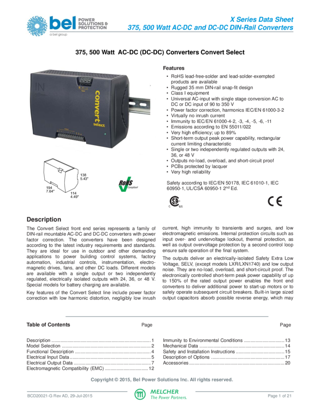 AC/DC Power Supply Single-OUT 24.7V 20A 494W