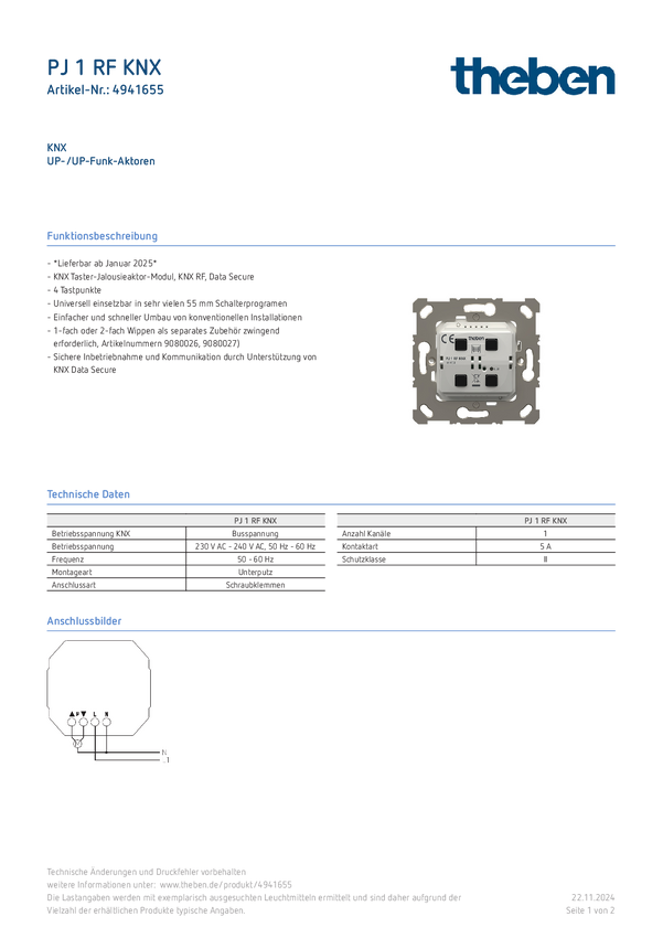 Element wykonawczy Theben 4941655 PJ 1 RF KNX