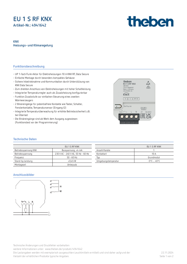 Element wykonawczy Theben 4941642 EU 1 S RF KNX