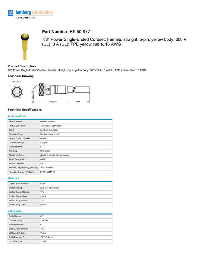Lumberg Automation 4944 Złącze konfekcjonowane czujnika/aktuatora 7/8" złącze, proste 15.00 m Ilość pinów: 5 1 szt.