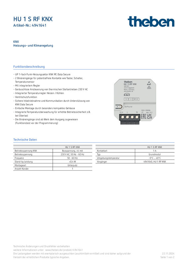 Element wykonawczy Theben 4941641 HU 1 S RF KNX