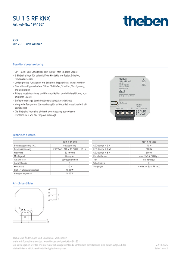 Element wykonawczy Theben 4941621 SU 1 S RF KNX