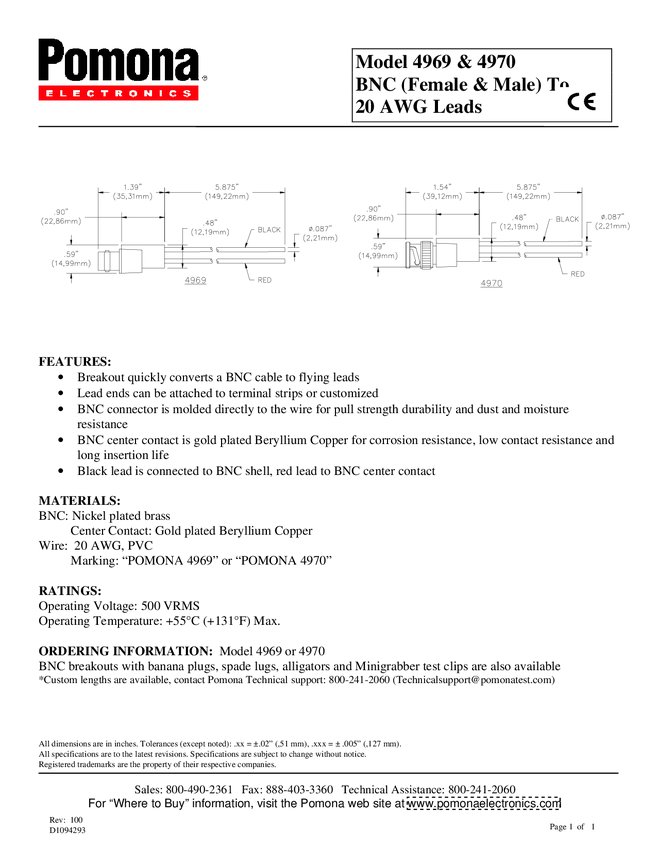 Pomona Electronics 4970 Przewód pomiarowy BNC