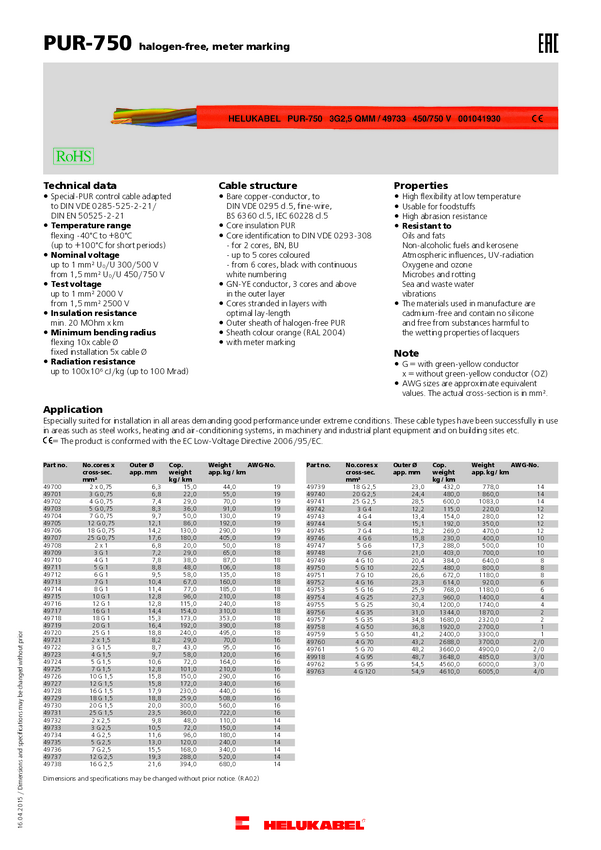 Helukabel PUR-750 Przewód sterowniczy 5 G 2.5 mm² pomarańczowy 49735-1000 1000 m