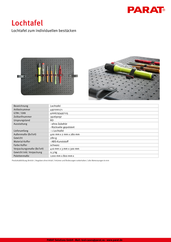 Tablica z otworami Parat 497000171 497000171 Wymiary: (D x S x W) 400 x 2 x 280 mm