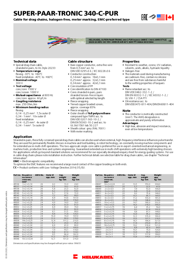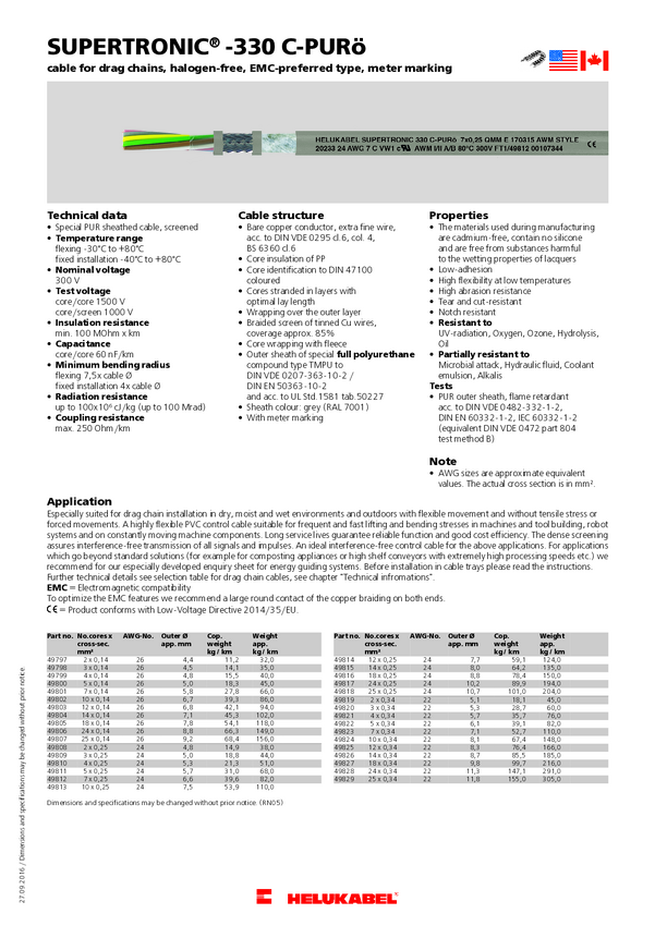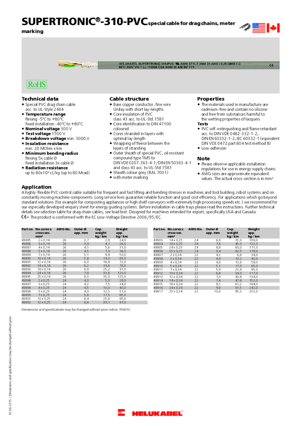 Helukabel 49891-500 Przewód do prowadnicy kabli S-TRONIC 310-PVC 12 x 0.14 mm² szary 500 m