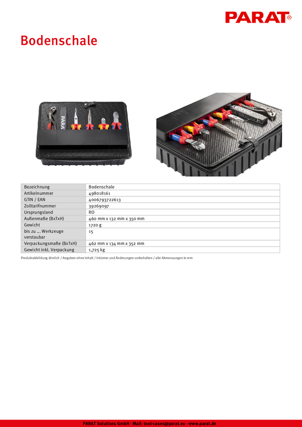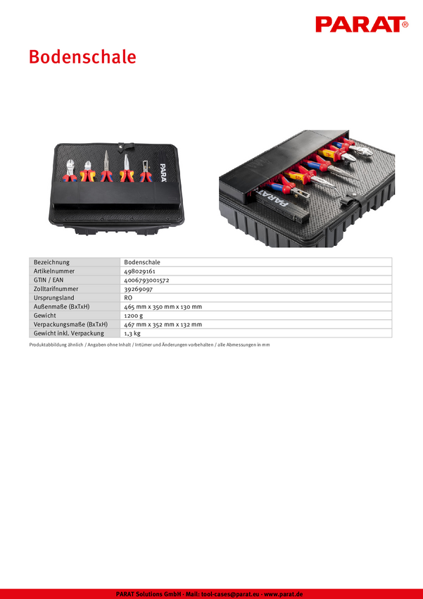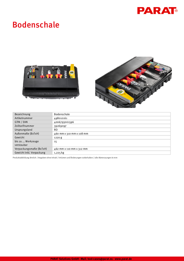 Dno Parat 498010161 Wymiary: (D x S x W) 460 x 310 x 108 mm