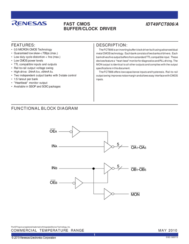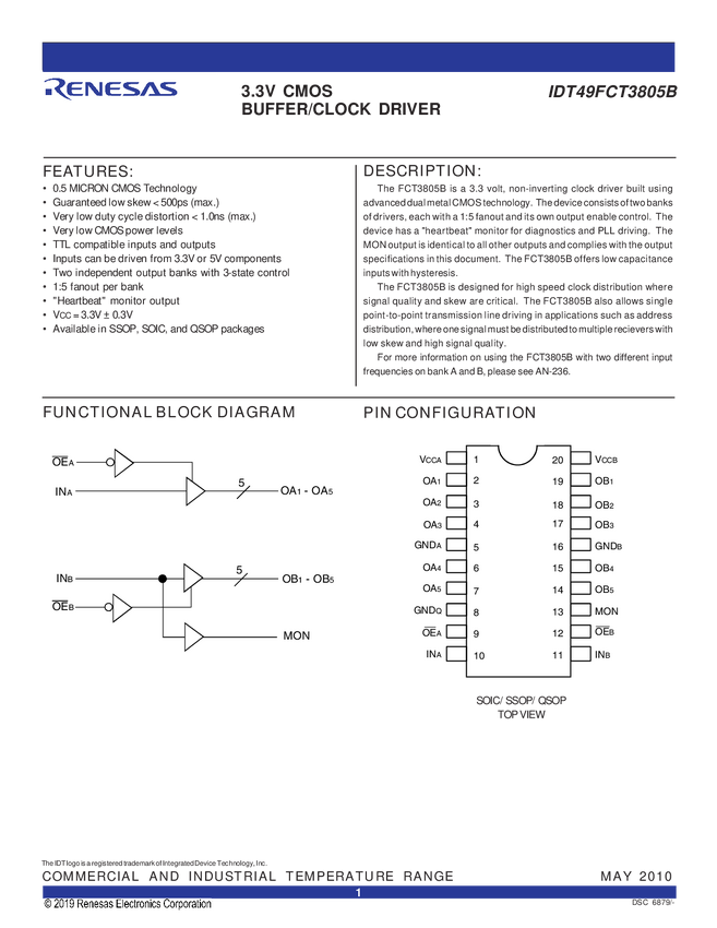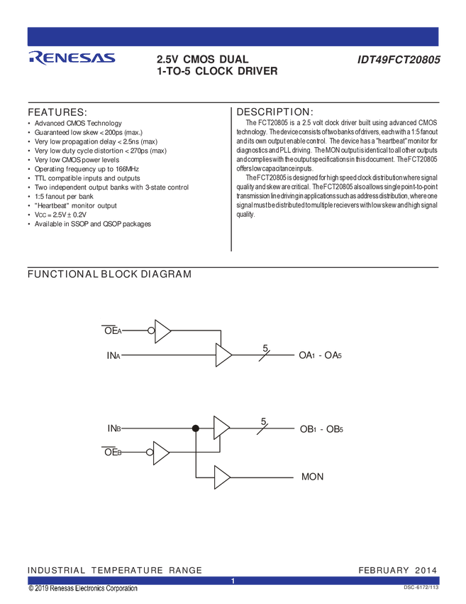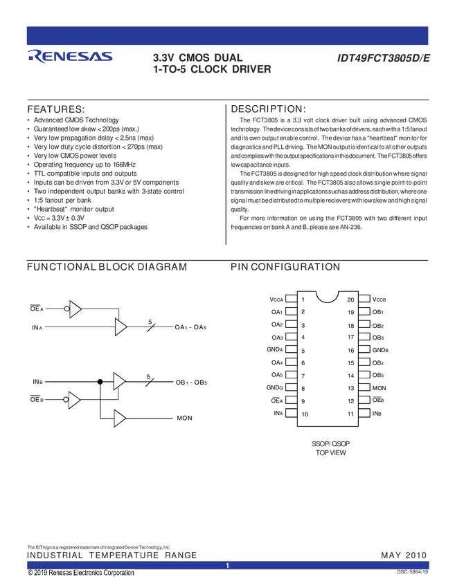 3.3V CMOS Dual 1 to 5 Clock Divider