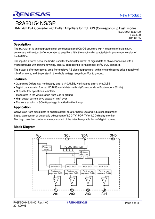 8-bit 4ch D/A Converter with Buffer Amplifiers for I²C BUS (Corresponds to Fast mode)