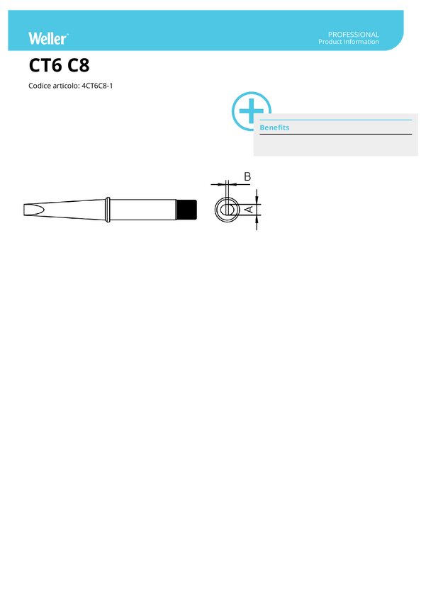 Grot lutowniczy Weller 4CT6E8-1, 4CT6E8 Kształt dłuta, prosty, 7.0 mm, 1 szt.