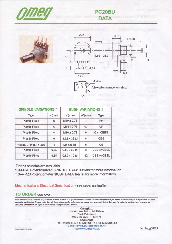 Potencjometr drutowy 60W; Bushing M10x0.75 ; średnica 53mm, gł.49mm; ośka 6mm; dł.22mm; kąt el.262 st.; kąt mech 282 st Tolerancja 10 % (lub 20%) ; liniowość producent nie podaje Zamiennik ( prawie identyczny wymiary, mniejsza moc : PM50W-10