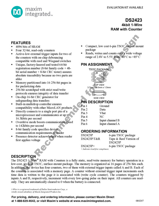 4kbit 1-Wire RAM with Counter
