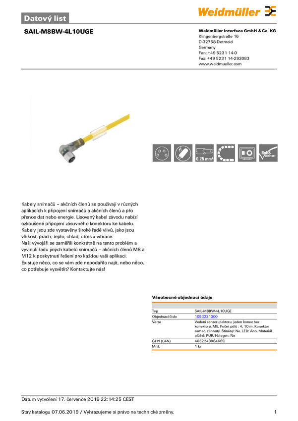 Przewód połączeniowy Weidmüller SAIL-M8BW-4L10QGE 1093231000 1 szt.