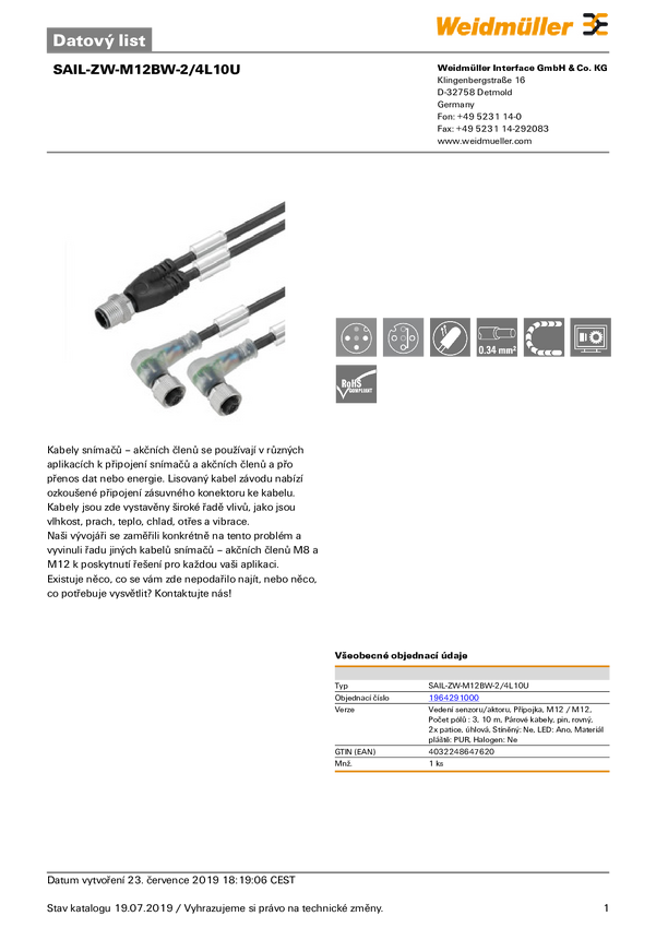 Przewód połączeniowy Weidmüller SAIL-ZW-M12BW-2/4L10U 1964291000 1 szt.