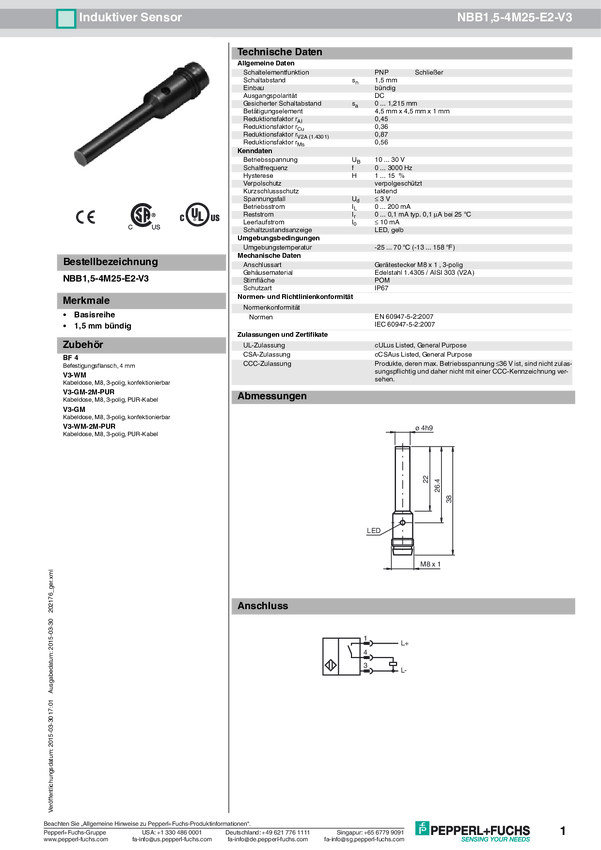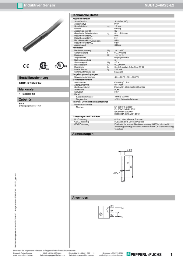 Pepperl+Fuchs Czujnik indukcyjny podtynkowy PNP NBB1,5-4M25-E2-V3
