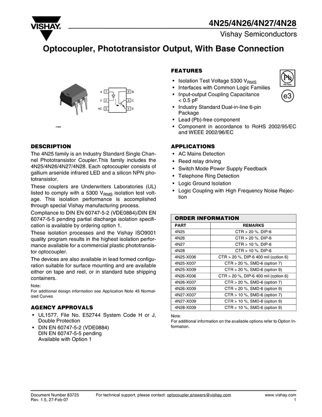 6-Pin DIP Package Phototransistor Output Optocoupler