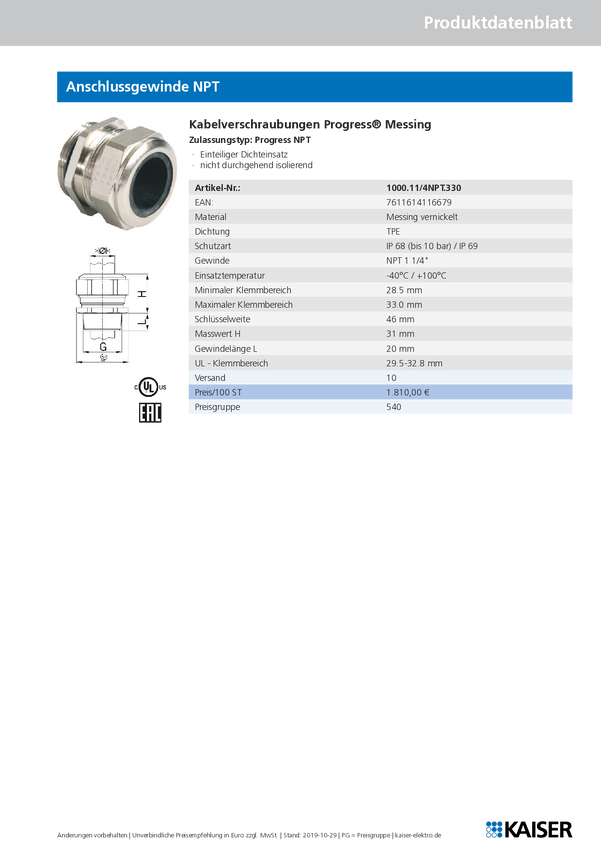Kaiser Elektro 1000.11/4NPT.330 Dławnica kablowa 1" metal 1 szt.