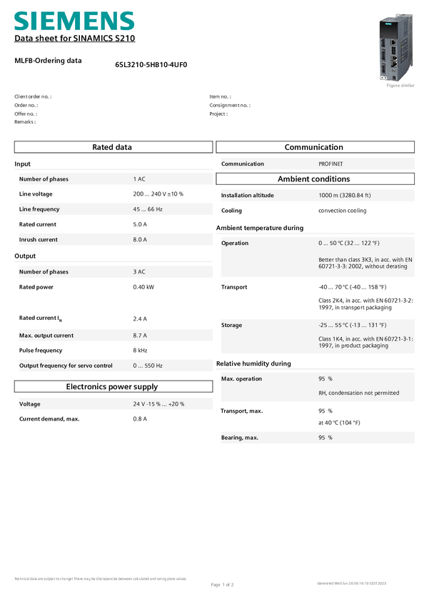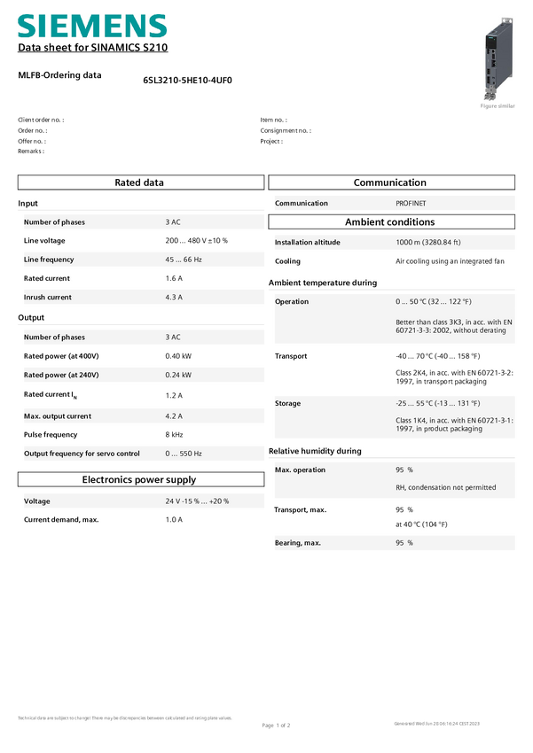 Przemiennik częstotliwości Siemens 6SL3210-5FB10-4UF1