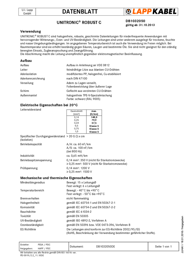 Przewód magistralny LAPP UNITRONIC ROBUST C 4x0,25 1032064/100, 4 x 5 mm, 100 m