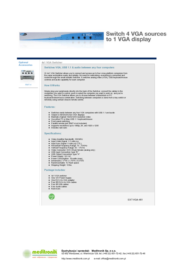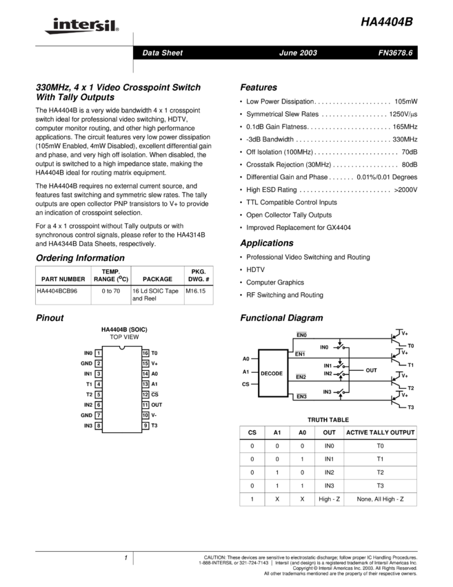 330MHz, 4x1 Video Crosspoint Switch With Tally Outputs
