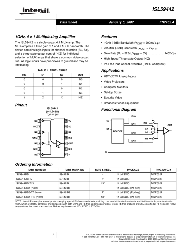 1GHz, 4x1 Multiplexing Amplifier with Synchronous Controls