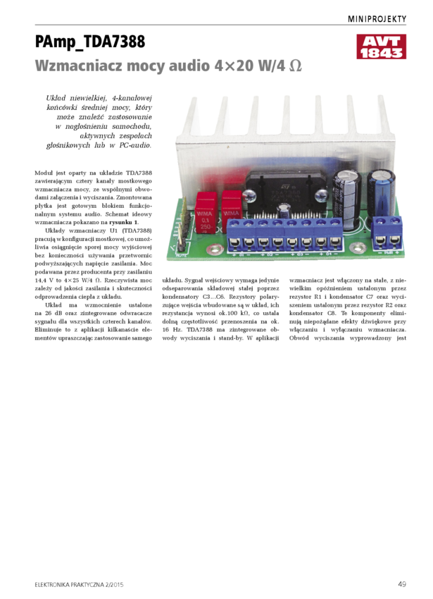 AVT1843 Wzmacniacz mocy audio 4x20 W/4 om