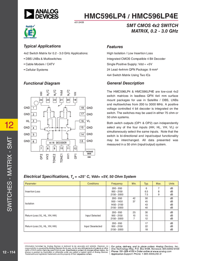 CMOS 4x2 Switch Matrix SMT, 0.2 - 3.0