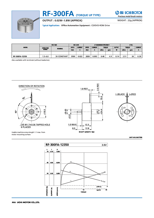 Silnik; mini; 6V; 1,5-6V; 0,02-1,8W; 3500 obr/min.; MT71; RF-300GA-2D390; RoHS