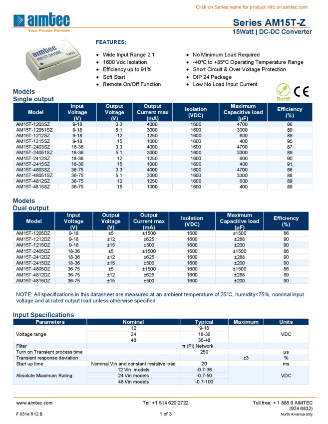 Module DC-DC 1-OUT 5.1V 3A 15W 24-Pin DIP Tube