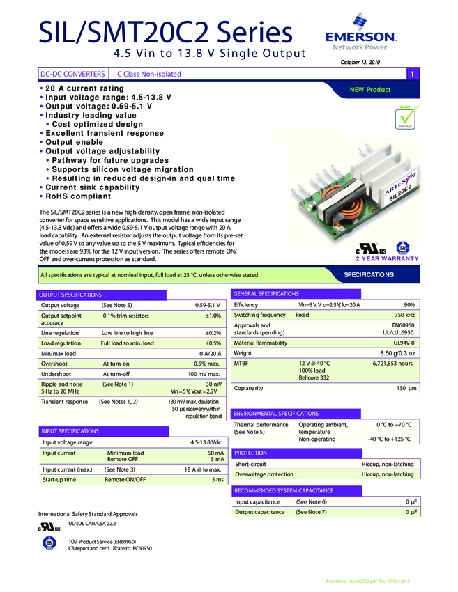 Module DC-DC 1-OUT 0.59V to 5.1V 20A 100W 8-Pin SIL