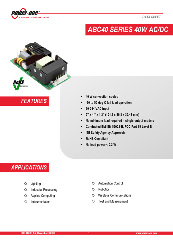 AC/DC Power Supply Single-OUT 5.1V 8A 40W