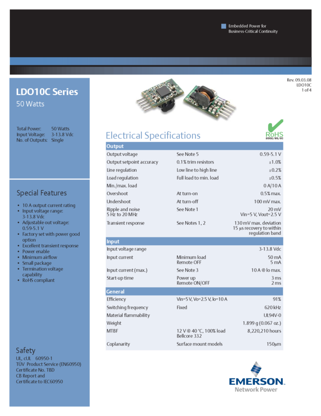 Module DC-DC 1-OUT 0.59V to 5.1V 10A 50W 6-Pin
