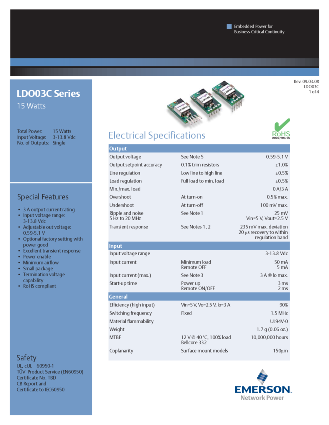 Module DC-DC 1-OUT 0.59V to 5.1V 3A 15W 6-Pin