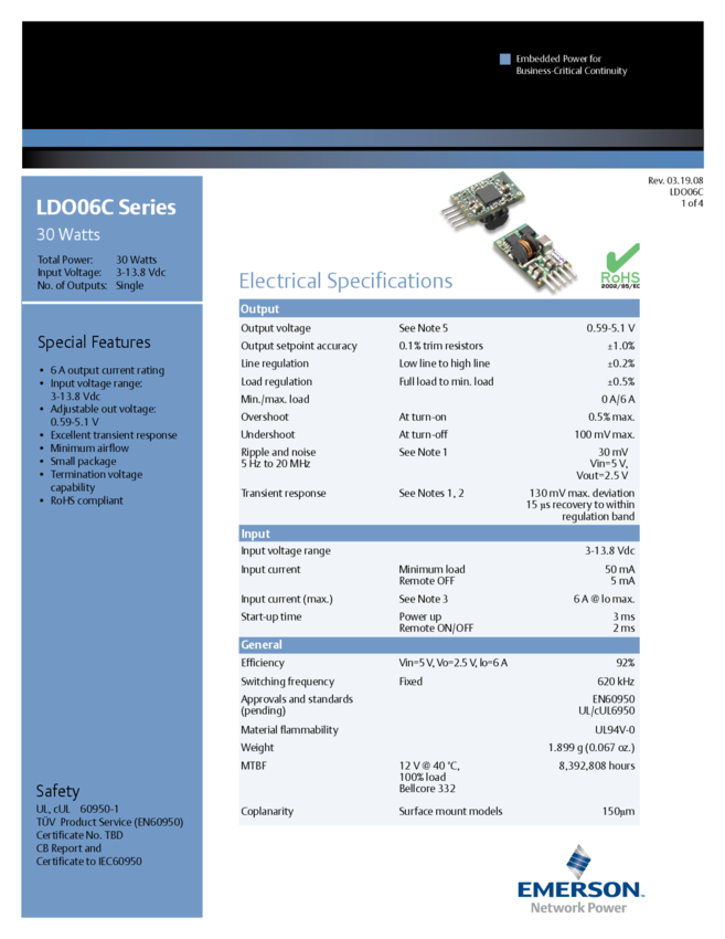 Module DC-DC 1-OUT 0.59V to 5.1V 6A 30W 6-Pin SMT
