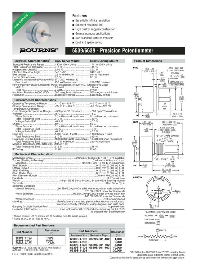 Res POT 50K Ohm 15% 1W 1(Elec)/1(Mech)Turn 6.34mm (22.23 X 36.65mm) Turret Panel Mount