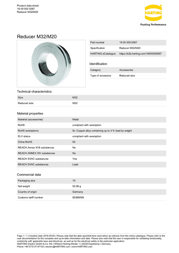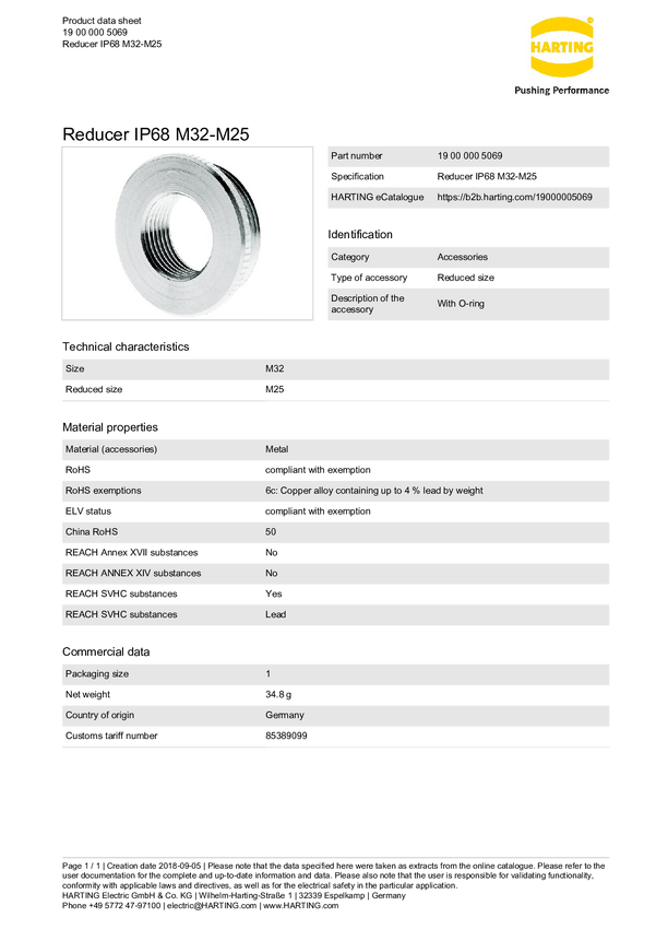 Redukcja Harting 19 00 000 5069, 1 szt.