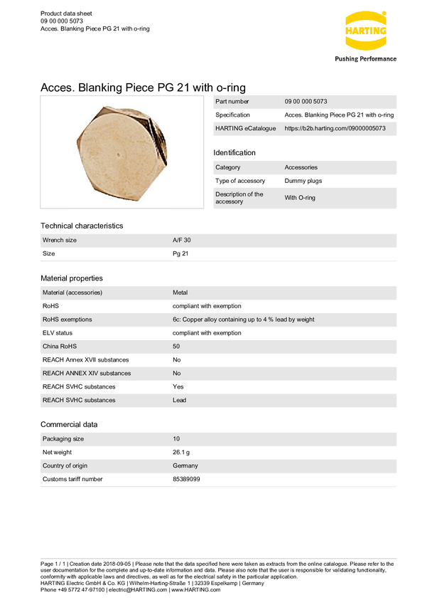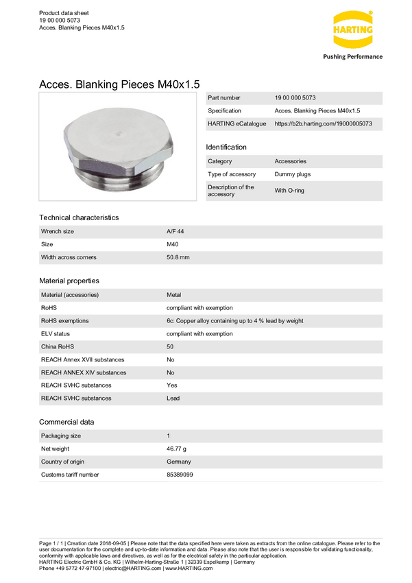 Złącze przemysłowe 19 00 000 5073 Harting Zawartość: 1 szt.