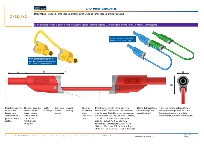 Electro PJP 2710-IEC-CD1-50BL Przewód pomiarowy złącze męskie, lamelkowe 4 mm złącze męskie, lamelkowe 4 mm 50 cm niebie