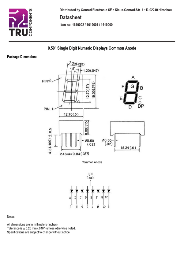 Wyświetlacz 7 segmentowy TRU-7S1-50BAG TRU COMPONENTS TRU-7S1-50BAG niebieski