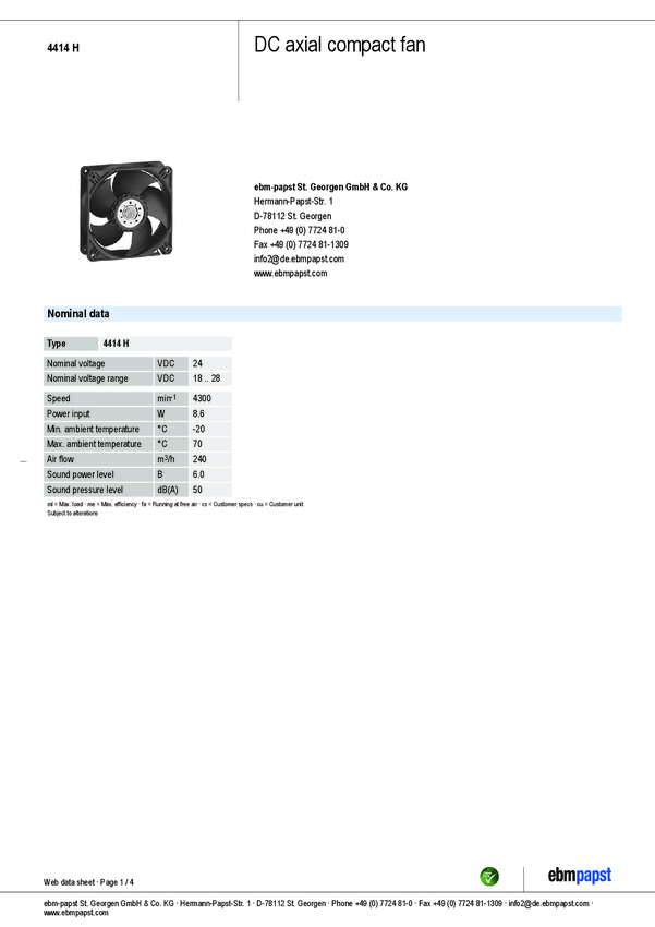 DC Fan Ball Bearing 24V 8.6W 4300RPM 141.3CFM 50dB Flange Mount