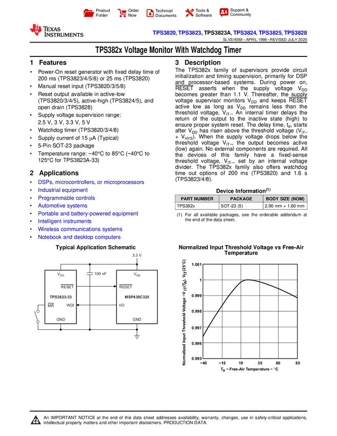 Układ scalony; TPS3825-50DBVR; układ nadzorujący; monitor zerowania zasilania (PoR); 1,1-5,5V DC; push-pull; manual reset; SOT23-5; SMD; TEXAS; RoHS; op/100szt