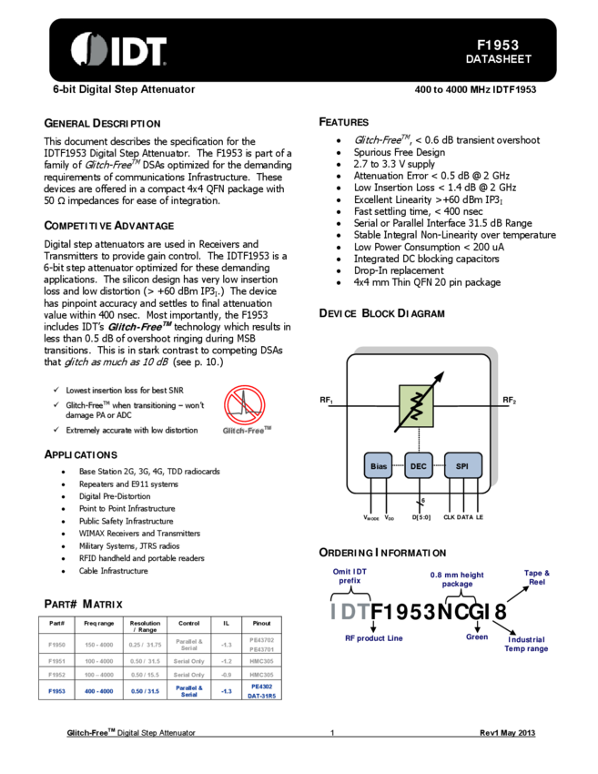 6-Bit 0.50dB Glitch-Free Digital Step Attenuator with Internal DC Blocks