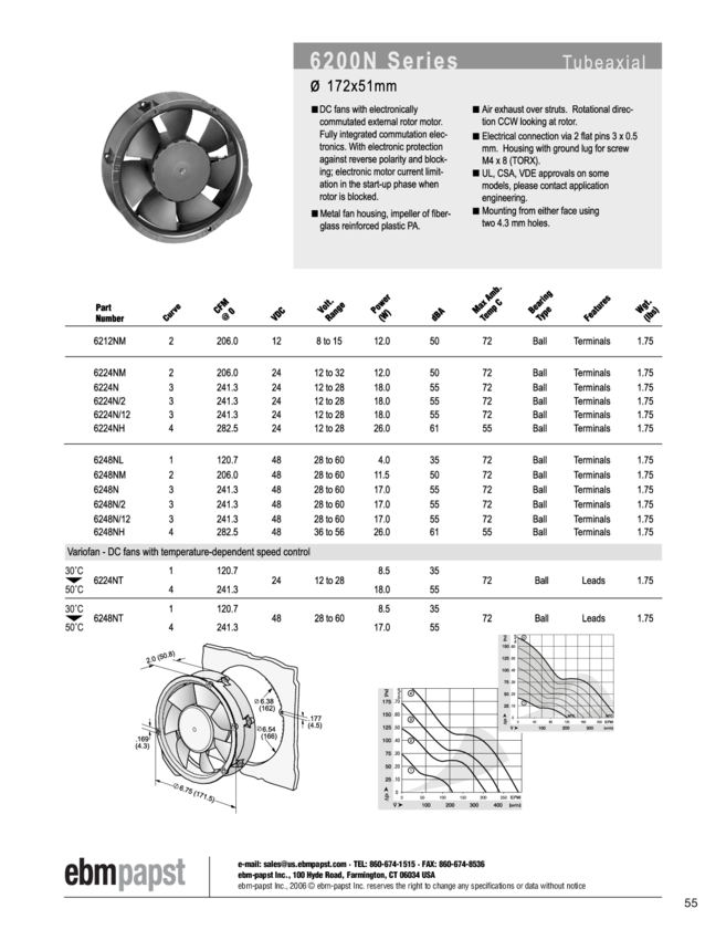 DC Fan Ball Bearing 48V 11.5W 2850RPM 206CFM 50dB Flange Mount