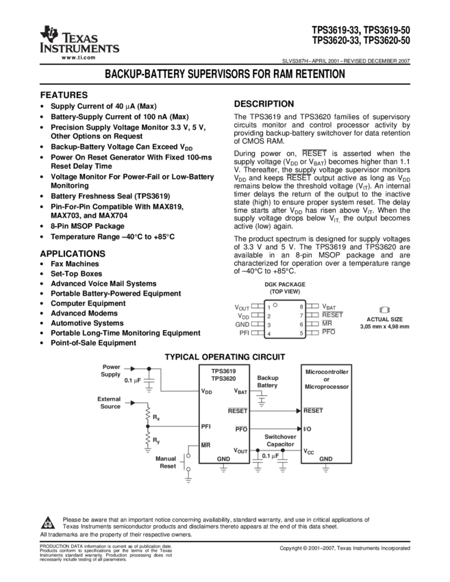 Processor Supervisor 2.93V 3.3V/5V 8-Pin VSSOP T/R