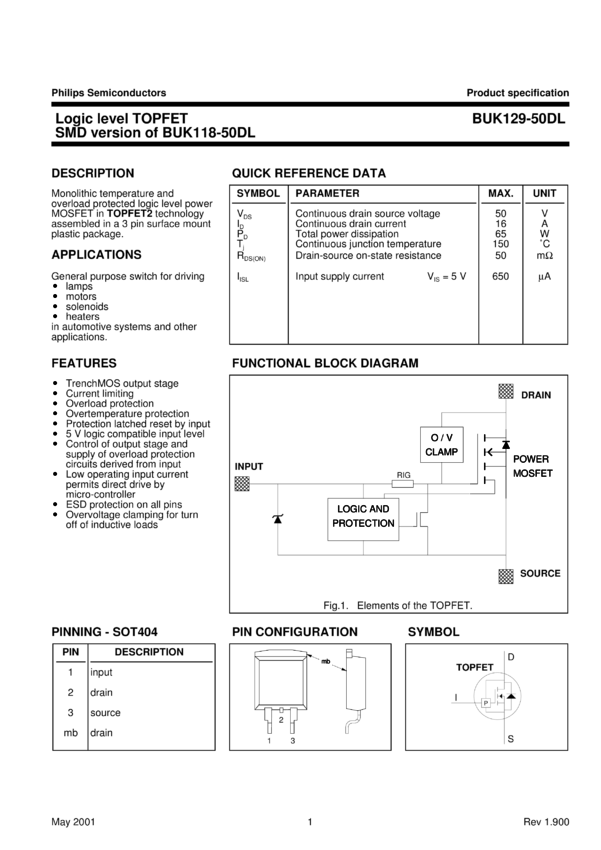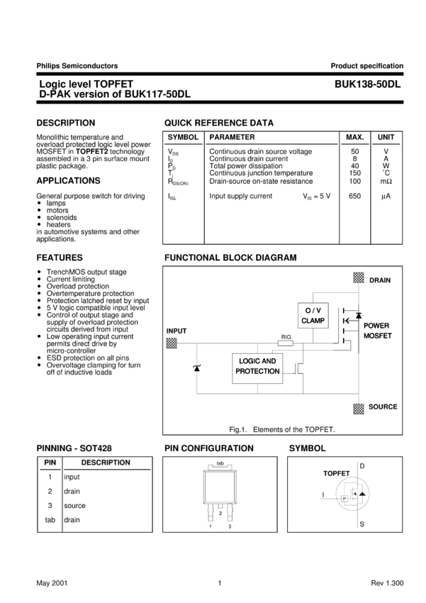 Logic level TOPFET D-PAK version of BUK118-50DL