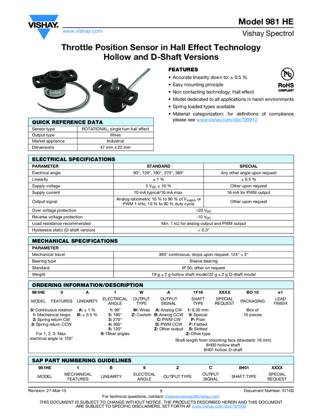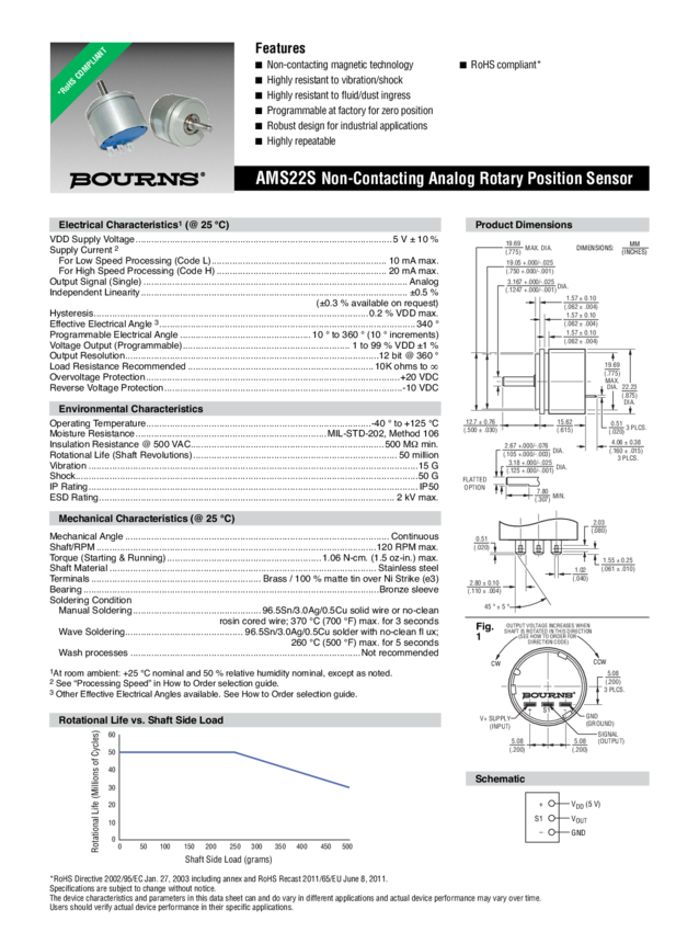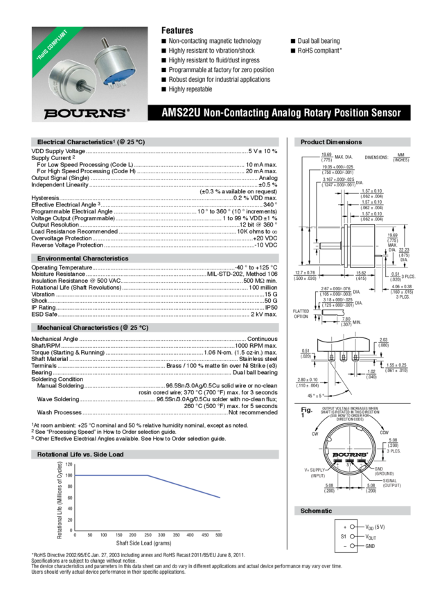 Rotational Type Position Sensors 50G Shock 4.5V to 5.5V